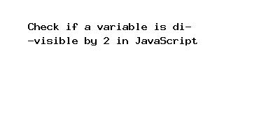 In this post we will give you information about Check if a variable is divisible by 2 in JavaScript. Hear we will give you detail about Check if a variable is divisible by 2 in JavaScriptAnd how to use it also give you demo for it if it is necessary.