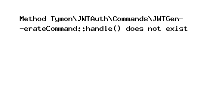 In this post we will give you information about Method TymonJWTAuthCommandsJWTGenerateCommand::handle() does not exist. Hear we will give you detail about Method TymonJWTAuthCommandsJWTGenerateCommand::handle() does not existAnd how to use it also give you demo for it if it is necessary.